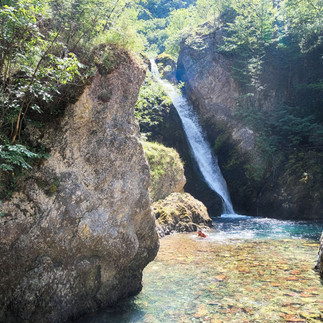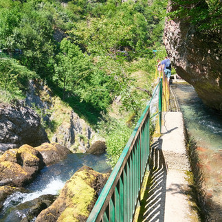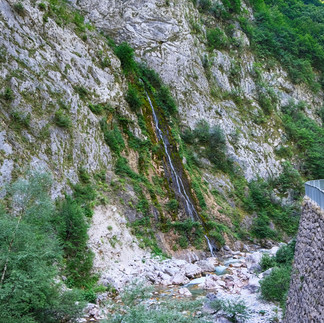 Drinas ūdenskritumu parks. Ieeja un autostāvvieta ir bezmaksas. Pa labiekārtotām taciņām var izstaigāt parka teritoriju, no stāvvietas taka aizved līdz ūdenskritumam un tad sadalās. Taciņa pa kreisi, 20 min garumā, ved gar nelielām jaukām ūdenskritumu kaskādēm līdz restorānam, kurš iekārtojies pie pašas ūdens, taciņa pa labi ved uz ūdenskrituma augšējo skatu vietu un turpinās līdz ‘’Shpella e Radacit’’ alai. Alas apmeklējums ir maksas, 2.5 eiro. Ieeja gida pavadībā, apmeklējums ilgst ap 20 min. Spriežot pēc cilvēku daudzuma parkā un restorānā, šī vieta par popularitātes trūkumu nevar sūdzēties.