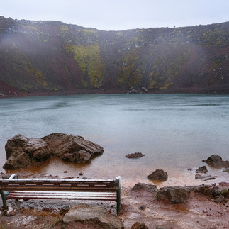 Turpinām dienu, Kerid krāteris. Maksas apmeklējums (4 eiro par cilvēku). Ap 2 km pastaigas, lai apietu apkārt krāterim un nokāptu lejā līdz ezeram. Pastaiga neliela, bet pa to laiku var paspēt izbaudīt kārtējos Islandes laika apstākļu untumus, sākot ar saules siltumu, beidzot ar aukstu, vējainu lietu.