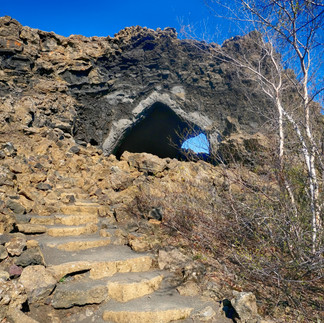 No paša rīta neliela pietura pie Skútustaðagígar pseidovulkāniem. Vieta ainaviska, starp pseidovulkāniem iet neliela pārgājienu taka. Mēs gan šeit ilgi neuzkavējāmies, aizbraucām tālāk uz Lava field Dimmuborgir akmens parku. Izvēlējamies autostāvvietu, no kuras uz parku gājām 6km turp/atpakaļ pa lavas akmeņu taku, bet taka tomēr nebija interesanta un lavas akmeņi beigās sāka nedaudz apnikt. Galu galā ienācām parkā no otras puses un nokļuvām Islandes ziemessvētku vecīša alā. Tā gadās. J Pats vecītis, loģiski, maijā nestrādāja, bet alu varēja apskatīt. Lava field Dimmuborgir akmens parks ir liels, ar daudzām pastaigu takām, no parka var doties tālāk pārgājienā uz Hverfjall vulkānu. Taču tas nebija mūsu šodienas plānos.